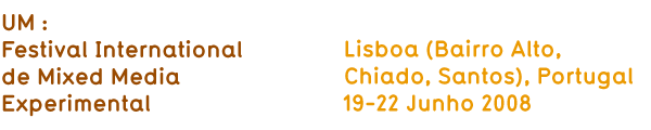 O Festival UM junta mais de trinta artistas nacionais e internacionais envolvidos na criação de trabalhos media que cruzam diferentes disciplinas e tecnologias para criar obras interactivas, participativas, socialmente conscientes e transformadoras. A programação para 2008 centra-se no tema do gesto e movimento.