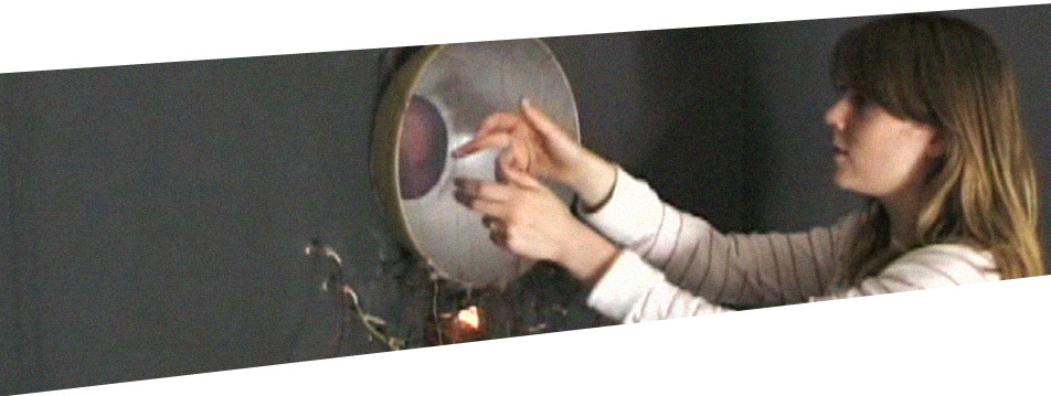 In Hairy Banjo, Healy continues her exploration of the body as a machine. Part performance, part installation Healy uses her own body hair to make live musical instruments. The hair attached to the artist’s head is stretched to make strings that are amplified using contact microphones and speakers. The audience can attempt to strum the hair and make music out of it. With the equipment supplied, music can then be archived by making an audio tape of the performance. In My Hairy Banjo, the only knowledge the audience has of the artist’s mental state is from a video camera/computer setup that is programmed (via Max/MSP) to show only a glimpse of her face whenever a hair is plucked. In these performances Healy is static, incapacitated by my costume and reduced to a playful object or automaton to be used by the audience.